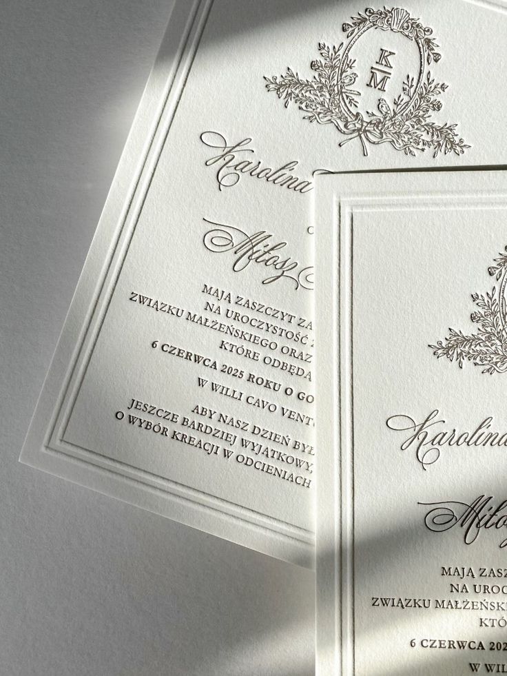 Elegant Letterpress Wedding Invitation with Monogram Crest in Polish