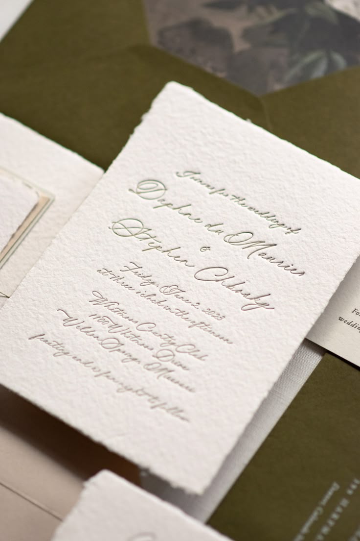 Textured Wedding Invitation with Elegant Script Calligraphy