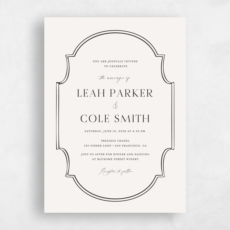 Minimalist wedding invitation with elegant black border design