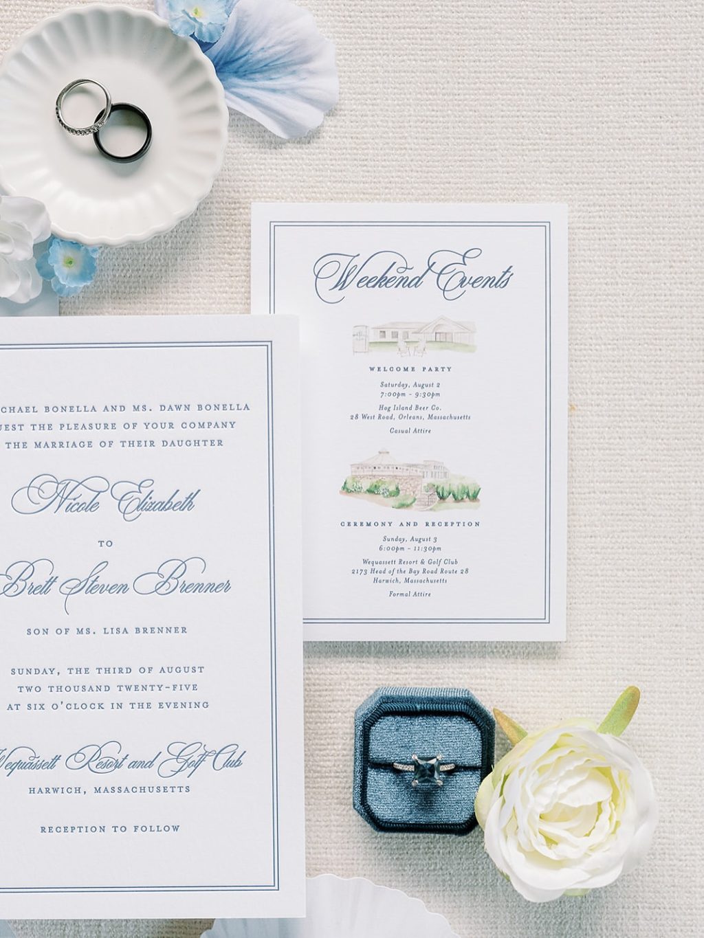 Navy Script Wedding Invitation Suite with Weekend Events Card