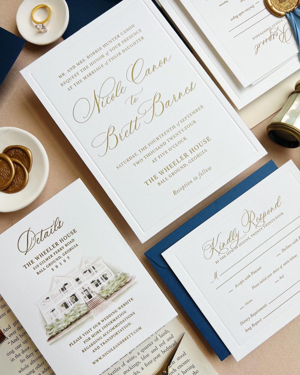 Elegant Wedding Invitation Suite with Gold Accents