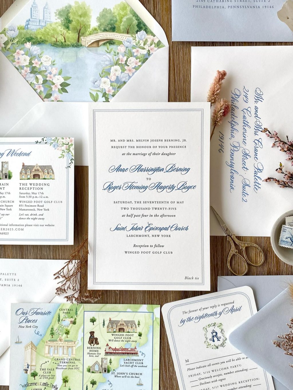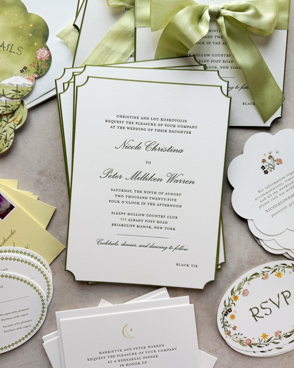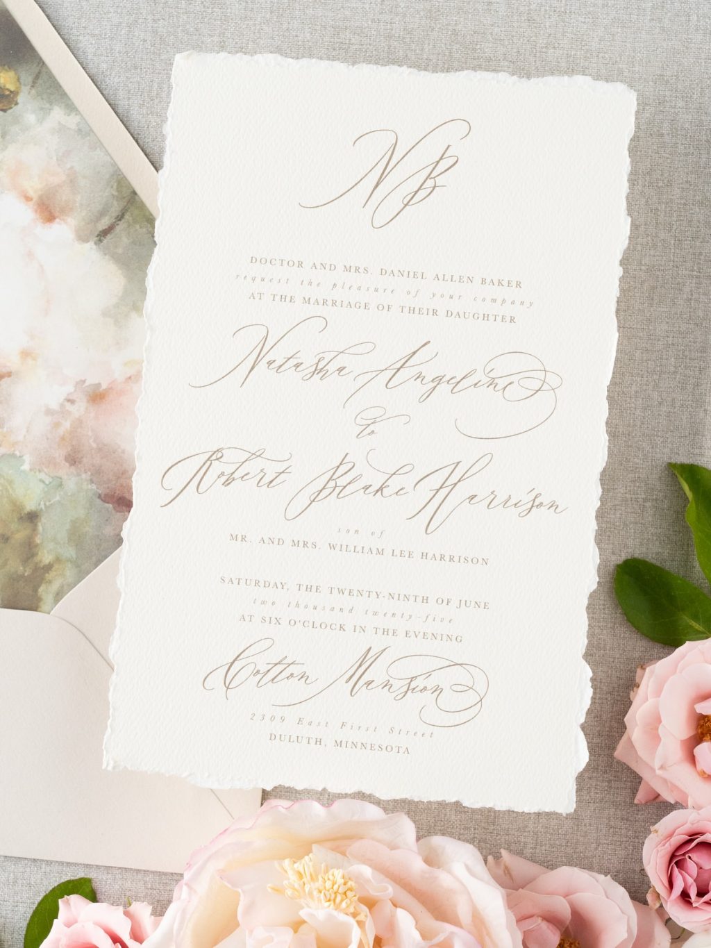 Romantic Wedding Invitation with Deckle Edge and Calligraphy