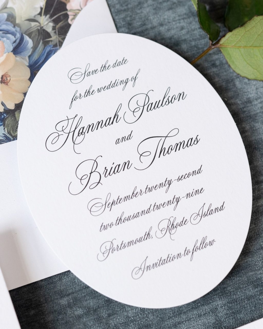 Elegant Oval Wedding Save the Date with Calligraphy Script